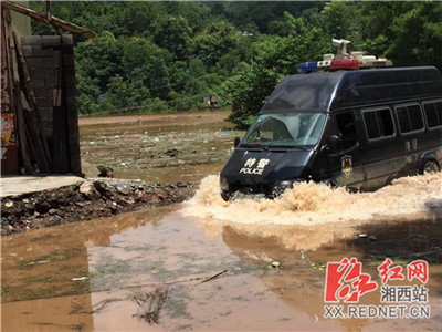 由于水位大幅上涨,湘西特警队员四次冲过高水位路段赶赴抗洪一线。