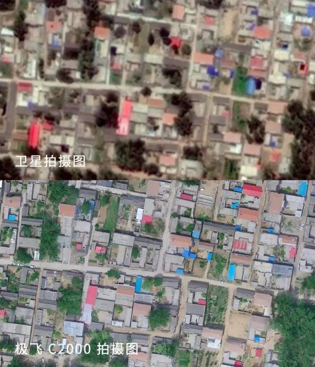 在无人机完成测绘后,用户通过 A2 智能手持终端将数据“一键”上传到加密云端,由极飞地理的解析软件对数据进行分析处理。500 亩的农田高清图像拼接仅需 1 小时,比传统测绘无人机的图片处理速度要快得多。而且 C2000 拍摄出来的高清影像图,清晰度要远高于卫星地图的分辨率。