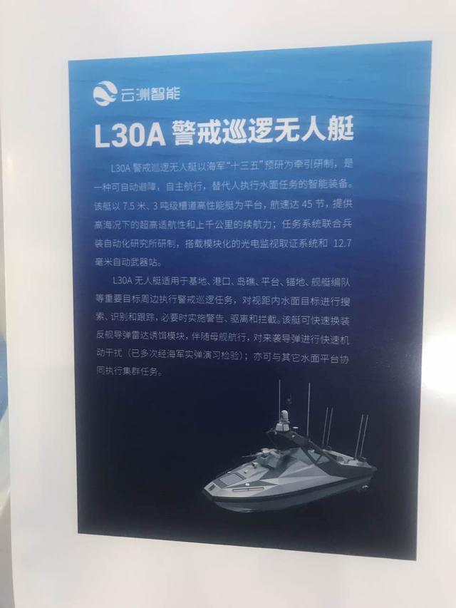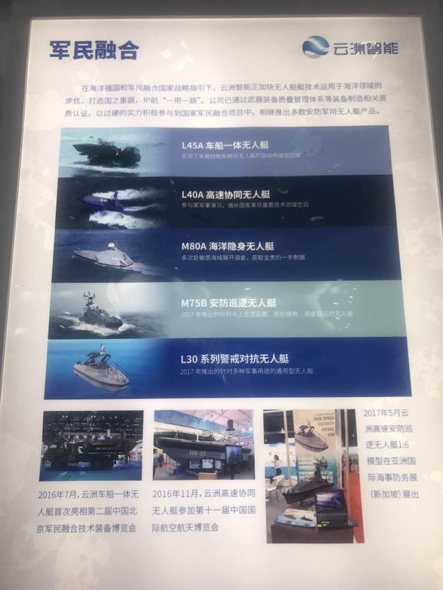 据产展商介绍,这款无人小艇配有专业云台操作系统,可控制无人艇伴随母舰执行任务。