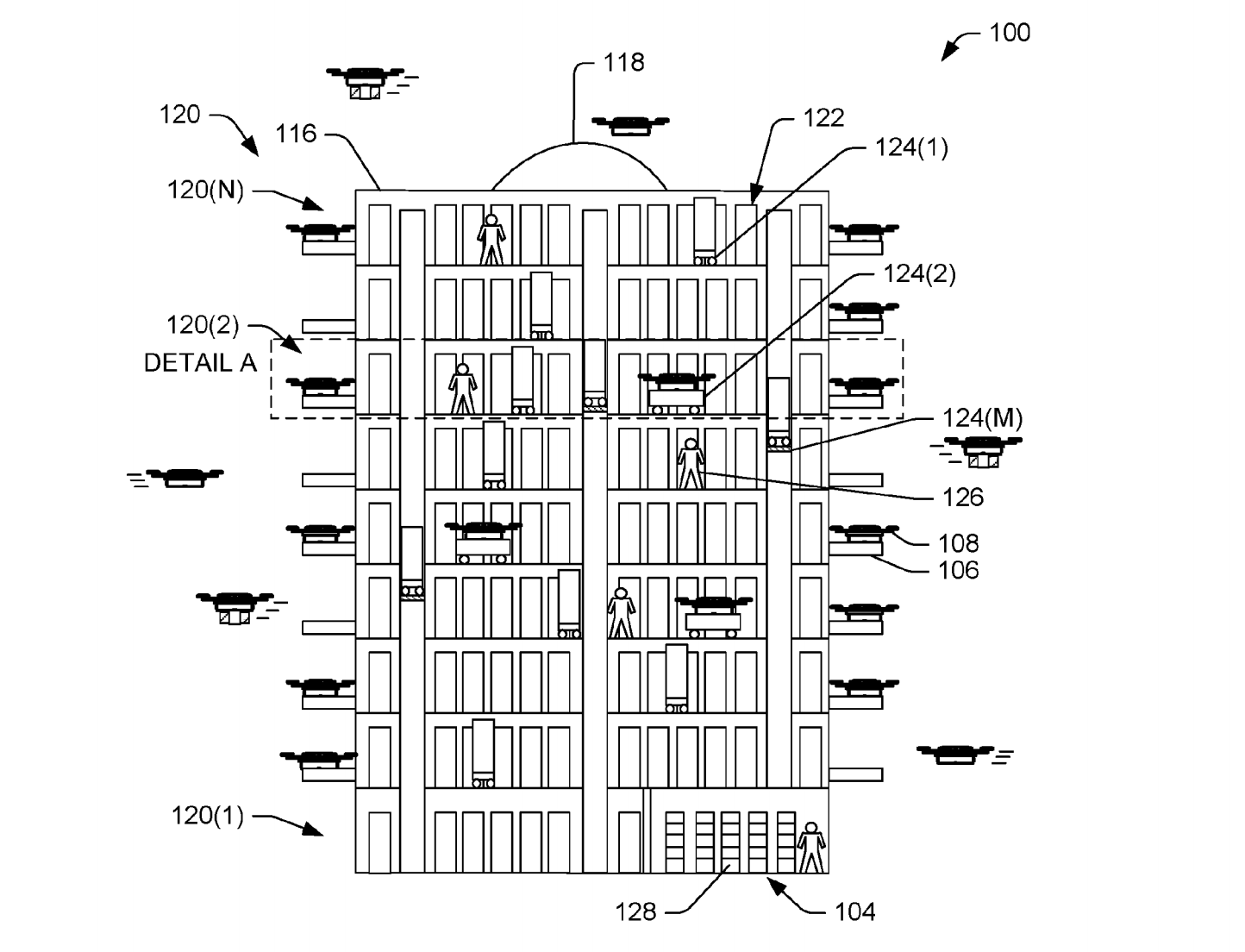 亚马逊尝试了一些怪异的送货方式,最新的一种是塞满无人机的摩天大楼。从这项专利申请中,可以看出亚马逊是计划如何整合无人机,并改进“最后一英里”送货的。