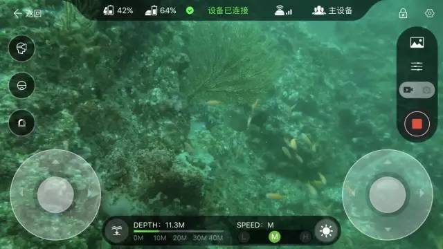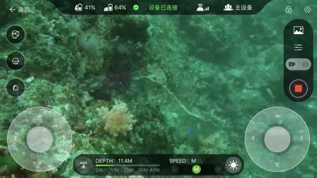 这是PowerRay小海鳐APP界面实时截图,没错,不再需要你是潜水高手,这样的水底风光,你通过手机就能实时看到,这一切,都得益于小海鳐的4K高清水下相机,帮助你把双眼延伸至水底。