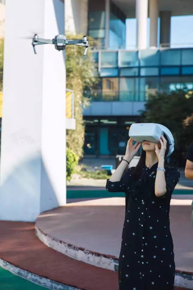 为了解锁DJI 飞行眼镜功能的完全形态,我们赶赴华师大闵行校区,找到了美丽的 Nina 同学以及她的“御”,来对DJI 飞行眼镜进行进一步的体验和评测。