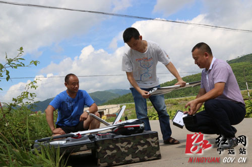 在清水桥镇,湖南省第一测绘院技术员正在做无人机航摄前期组装、调试、试飞等准备工作。