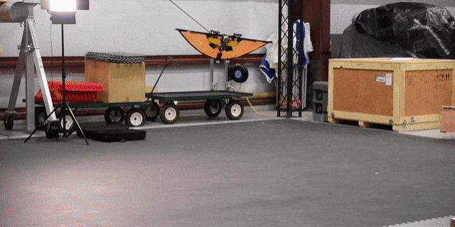 从视频中我们可以看到,这是一款双轴无人机,外形看起看起来像一只飞鼠,它的体型很小,重量大概只有 0.5 磅左右,由于自身的转轴可以自由倾斜,这就给无人机带来很强的灵活性。设计这款无人机的意义在于与现场士兵进行配合,对战场前方情况进行侦查。