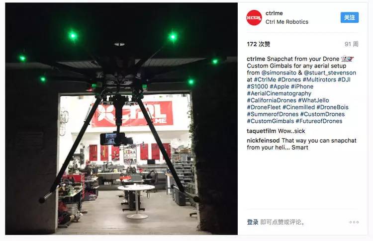 Ctrl Me Robotics 在社交网站 Instagram 上展示了一台用 Snapchat 自拍的无人机。