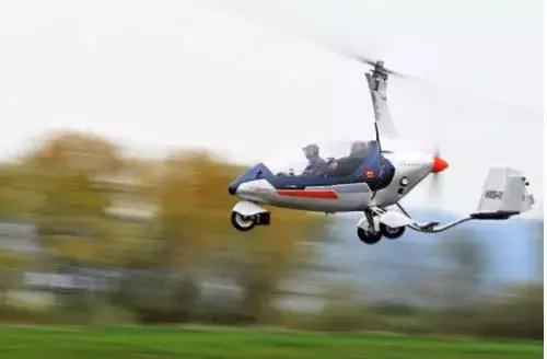 GyroDrive 并非直升飞机那样原地升降,而是要借助公路滑行100米起飞,降落时候同样也要一定的滑行距离。落到地面之后拉出车牌,就能上路行驶了,那画面超级拉风!