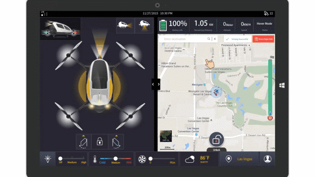 与飞行汽车相比虽然差了许多,但亿航184也有可圈可点之处,比如,只需在机载应用中设定目的地,下达飞行指令后,飞行器会自动驾驶抵达目的地。