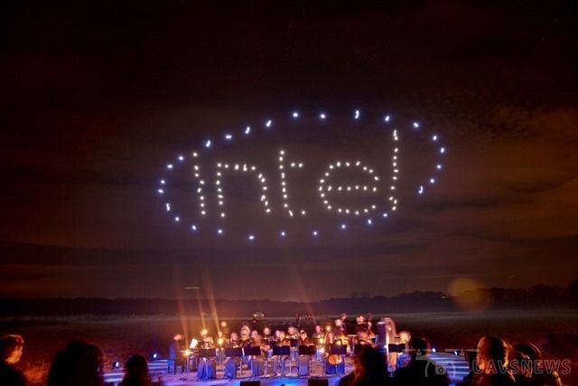 图:英特尔无人机灯光秀,用500 架无人机在夜空拼成一幅巨大的英特尔Logo,场面十分震撼。