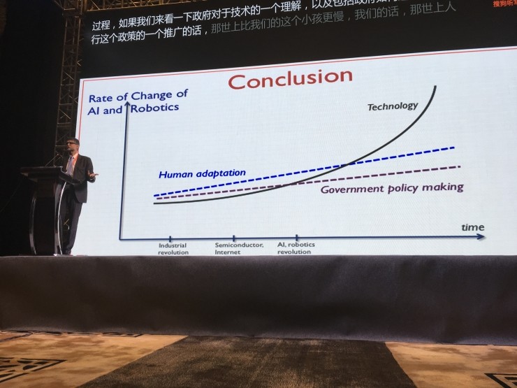 最后,他总结道,这是一个让人兴奋的时代,人工智能的发展会是爆发式的,但是,人类以及政府机构对新技术的接受能力却是线性的。还有一些关于法律监管方面的问题也会出现,这些都值得我们注意。