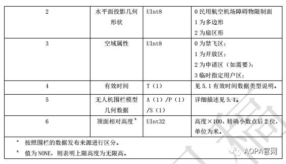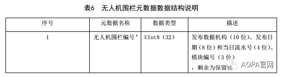 无人机围栏数据库是由分布在全国各地的无人机围栏的元数据组成,无人机围栏对象的元数据数据结构见表6。
