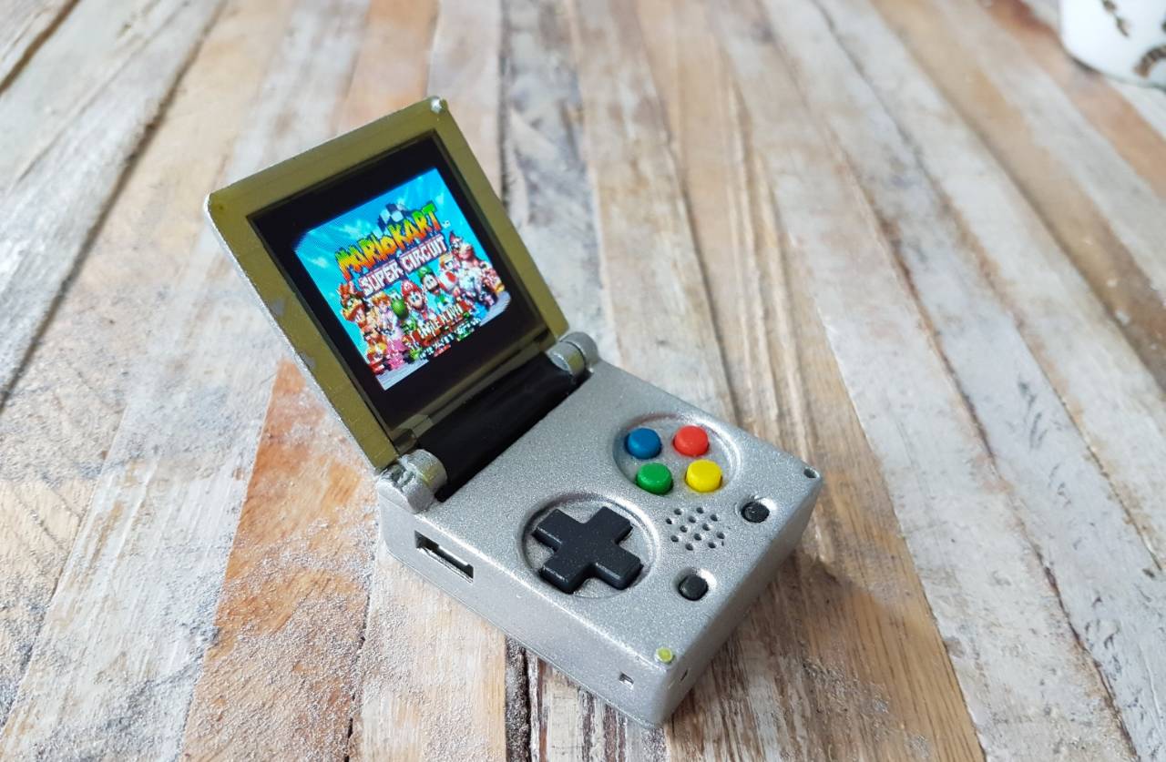 这款超级迷你版的 Game Boy 被称为 Keymu,由国外一位 Youtube 博主 Vincent Buso 自己组装完成。采取的是类似 Game Boy Advance SP 的翻盖设计,加载了一块 1.5 英寸的 OLED 显示屏,分辨率只有 128×128 。机身上除了十字按钮外还有四个按钮。