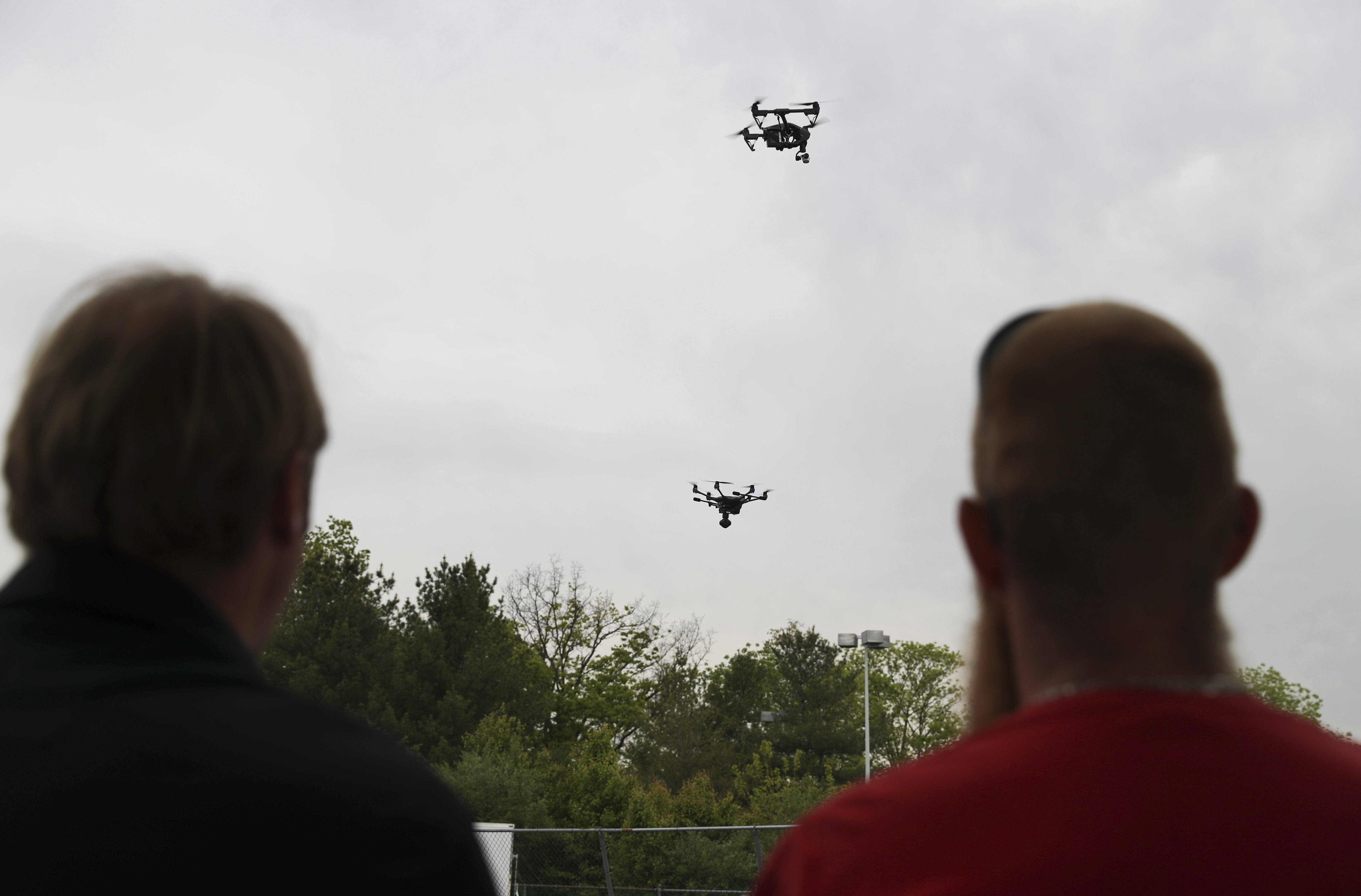 2017年5月11日,在美国新泽西无人机飞行学院,无人机爱好者操控无人机。