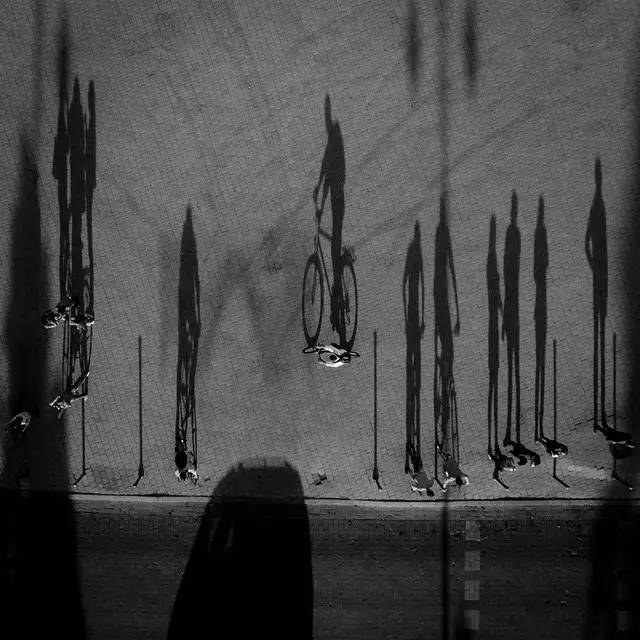 建议以垂直的角度进行拍摄,这样阴影就能水平地呈现在画面中,尤其是在下午阳光充足的条件下,阴影往往能轻而易举地成为画面的中心。