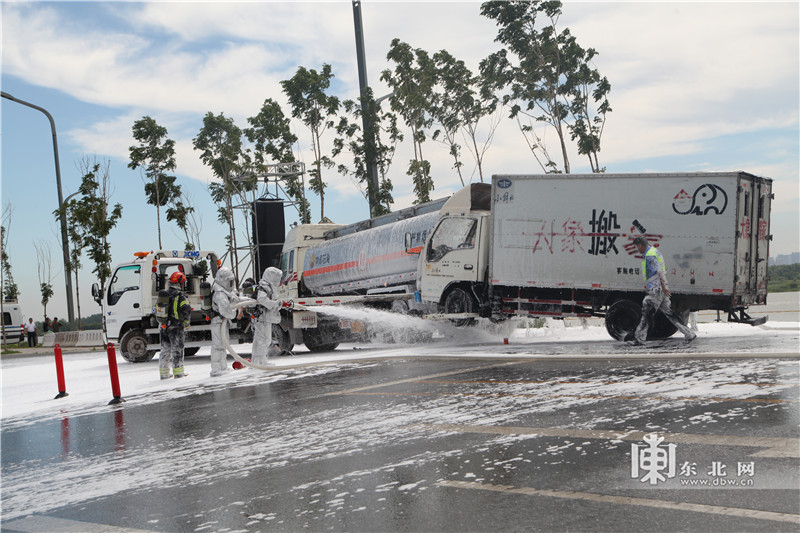 演练中,哈尔滨市政府出动8个部门,公安、消防、卫生、环保及中石油运输公司等单位共出动各类抢险车辆21台,出动无人侦察机2架,消防灭火机器人1个,确保了演练活动圆满成功。