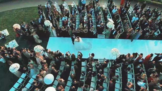 无人机,避开其他摄影师的镜头,从上空完整记录了婚礼,除了新人的身影,更重要的是现场亲友团的欢呼雀跃也被完整记录,这在以往的婚礼拍摄中是很难兼顾的。