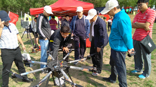 一架造型引人注目的八翼“无人机”,伴着优美的空中姿态首次在张北的民用无人机监控技术研讨会暨设备展示会上空盘旋。“这可不是一架普普通通的无人机,而是抓获‘黑飞’无人机操作者的空中警察。” 国家无线电监测中心副主任兼总工程师李景春说。