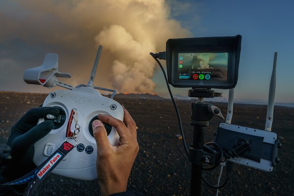 无人机还没飞到火山口,就看到了熊熊大火。