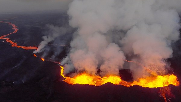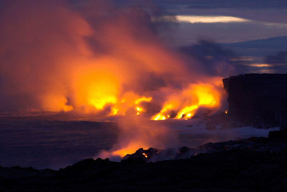 照片中,高达220摄氏度的液体岩浆喷涌而出,整个画面浓烟滚滚,十分壮观。