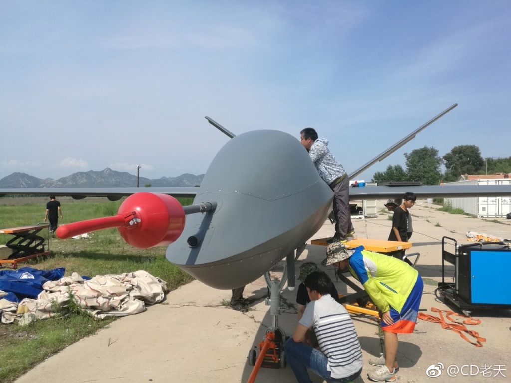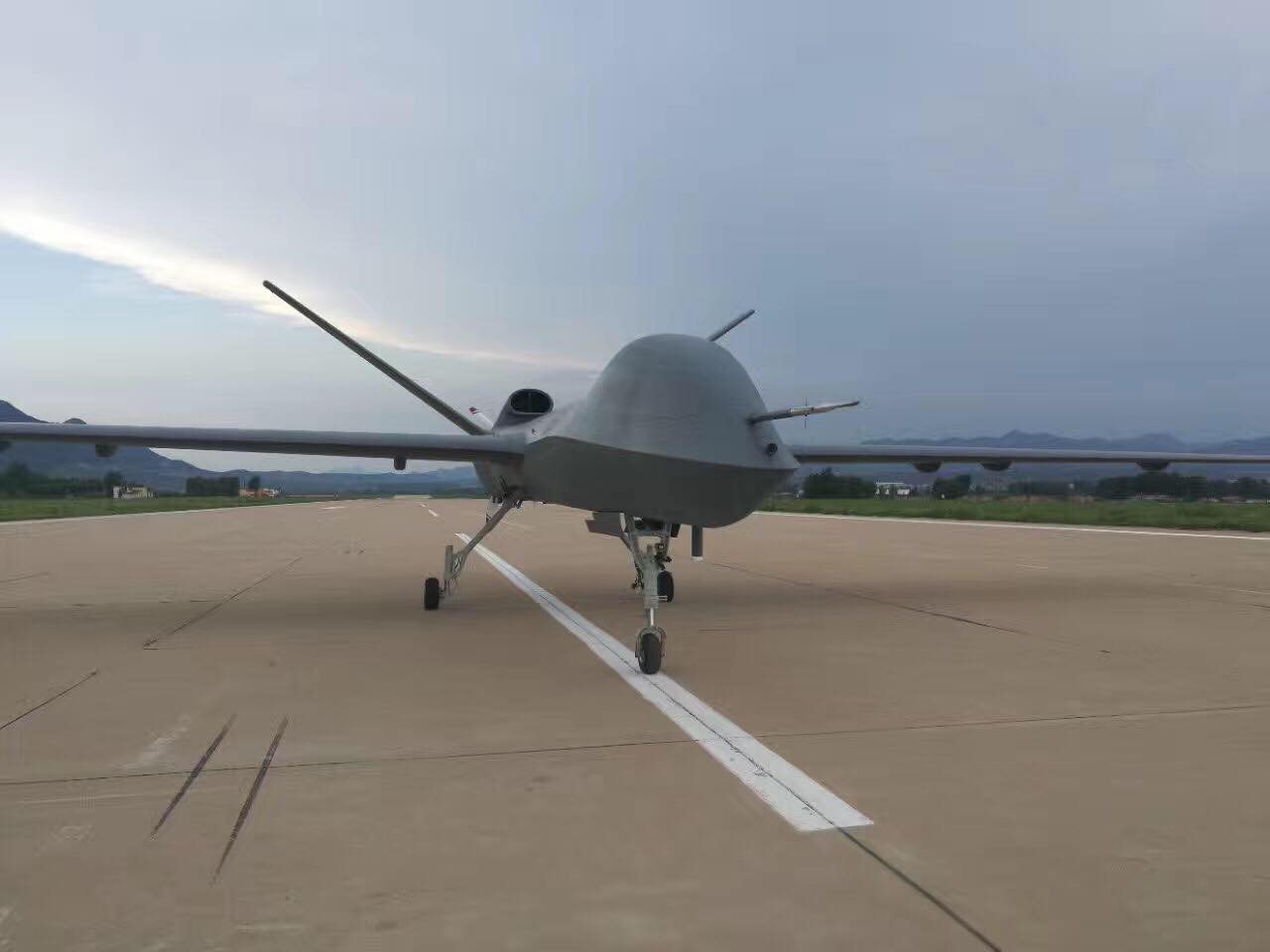 14日下午4时25分,在记者和工作人员的翘首以盼下,中国最大武装无人机“彩虹5”的量产型号完成首飞,成功降落在河北某机场。
