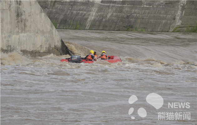 15时53分,消防官兵到达事故现场,侦查发现:被困者位于拦水坝石墩旁,距离岸边约150m,四周洪水湍急,随时危及被困者生命。现场指挥员立刻制定救援方案,准备使用橡皮艇驶向对岸实施救援,并向县政府汇报现场情况,协调无人机1台,向被困者运送救生圈救生衣等,做好安全保障。
