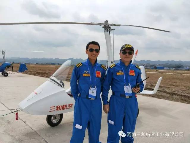 “太阳之鹰”自转旋翼机是河南三和航空工业有限公司自主研发、生产的开放式座舱,前后串列的双座旋翼机,除具备旋翼机本身的稳定性高、安全性好、抗风性强、性价比高等特点外,我公司还专门设计了整机弹射降落伞,在没有迫降条件的情况下飞行员可以打开整机降落伞进行整机迫降,大大提高了飞行的安全性。三和航空作为国内首家被民航局批准制造旋翼机的厂家,此次参加大会,不仅为大家带来了精彩的飞行表演,更是展现了中国通用航空制造业的蓬勃发展。