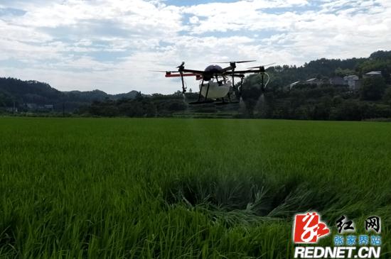 “以前人工喷洒,一个人一小时最多喷洒1亩田,现在一架无人机,一个小时就能喷洒30-50亩。”区农业农村工作局总农艺师张小兰介绍,无人机喷撒具有高浓度细喷雾的特点,通过GPS定位,不会出现重复、漏喷,要比人工喷洒农药用量减少20%。同时,实现了人药分离,有效保障了农民的身体健康。