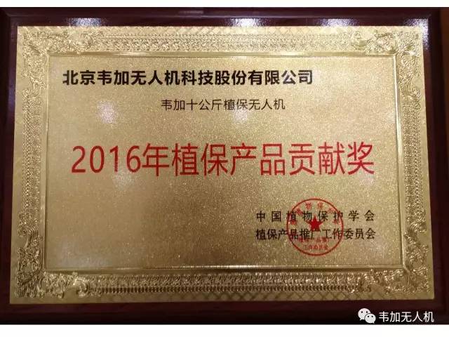 经过严格筛选(包括企业资质审查、专家评审、公示、市场调研等环节),“2016年植保产品贡献奖及推广奖”一锤定音,在170多个参评产品中,韦加无人机旗下10kg级植保无人机——六叔脱颖而出,喜获2016年植保产品贡献奖(农机类)!