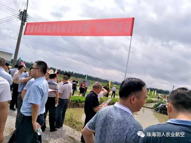 借助现场培训演示会,大家共同积极探索了农机农艺融合新模式,着力解决水稻全程机械化的薄弱环节,推进水稻生产的全程机械化的发展。随着珠海羽人自主研发的谷上飞3WDM8-20L飞防植保演示,其负载能力强、抗风性能好、施药效果好、操作简便、既省工、省时,又减轻了劳动强度,深受观摩人员的青睐及广大种植户的认可。珠海羽人出席代表蔡总对领导、种植户及现场观摩人员进行现场讲解,进一步让领导、种植户及观摩人员深入了解到农用无人机对现代农业机械发展的重要性。据介绍,珠海羽人1架20L的农用无人机,仅约8-9分钟即可喷洒完满载20L的水(药)剂,而人工打药1天平均可喷洒10-20亩地农田,相比之下,农用无人机远远高于人工打药效率,省人工降成本,越来越受到了农户的广泛认可和欢迎。