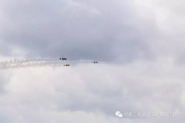 2017年7月21日,第六届AOPA国际飞行大会暨第二届贵州黄平飞来者大会在贵州黄平旧州机场盛大开幕。河南三和航空工业有限公司携三架自主研发生产的“太阳之鹰”自转旋翼机亮相本届大会,公司总经理陶亮带队三机编队为大家上演了精彩的空中表演,公司副总经理兼总飞行师首席试飞员王志强更是上演了精彩刺激的单机特技飞行表演,在这样空前盛大的飞行大会上,不仅展示了三和航空具有完全自主知识产权的旋翼机性能,更是展现了我国通用航空制造业的蓬勃发展。