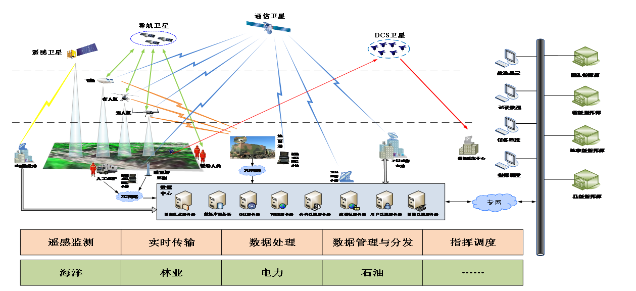 无人机与卫星监测、地面监测等手段构成天、空、地一体化的无人机应用系统,具备全方位全天候快速、高效的监测能力。
