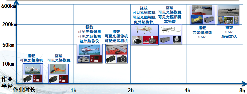 最大作业半径可达600km,最长作业时间可到8h,最大载荷能力可达60kg