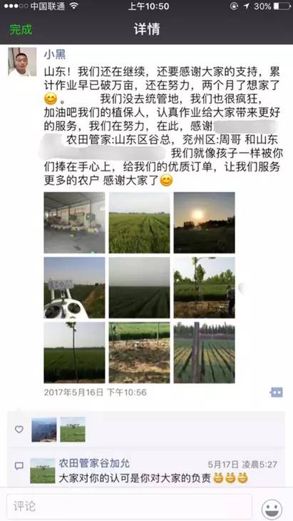 六万块钱的无人机,一年待在天上只有几周时间。余洋看明白了:飞防手大部分时间,都在找农民、验土地、等账期,市场急需把“飞防操控”以外的环节剥离,由平台承担。就像滴滴,司机只管开车,乘客到地走人。