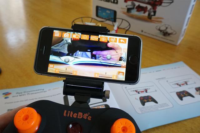LiteBee Brix DIY 积木无人机有两种遥控模式,直接用手柄遥控和手机app遥控。用手柄遥控,无人机接通电源,手柄开机,即能用左边摇杆上推起飞。如果要切换手机,手机需要在wifi里搜索“LITEBEE_BRIX”等字样的热点,然后打开事先下载好的手机APP,用遥控手柄两个摇杆同时往中间往下推,即可以切换到手机遥控模式。