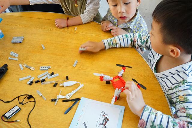 经过三个小朋友的不懈努力,终于在大概四十分钟左右,完全通过自己阅读说明书,把整个无人机搭好了,说明书都是图解,所以对于孩子并没有多大的问题,而且在拼接的时候,孩子们也会问,这个是干什么,那个是干什么的,把无人机的主体结构和细节都了解的七七八八,带摄像头主控、机翼、无线遥控器、锂电池、保护罩和充电器等等。当全部完成后,三个小孩脸上满满的成就感,别提多开心了。