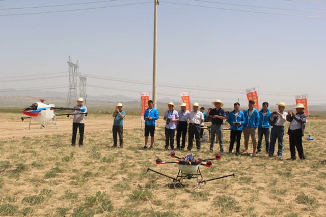 此次草原虫害社会化防治工作主要采用大型自走式喷雾、拖拉机载式喷雾、摩托车载式喷雾、人工背负式喷雾器械进行因地制宜地防治,同时采用电池动力多旋翼和单旋翼农用无人机进行无人机试验示范。植保无人机具有作业高度低,农药漂移少,能仿地飞行,作业效率高等优点,可解决劳动力缺乏和防治效果差等诸多问题,有利于推草原虫害统防统治工作,具有很强的示范推广意义。