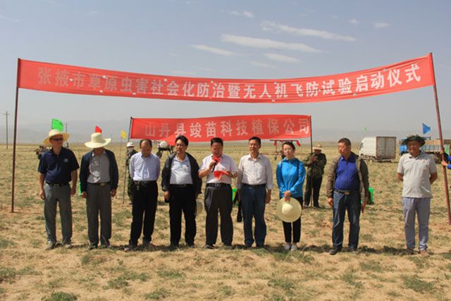 7月14日,全省首批2017年草原虫害防治社会化服务暨无人机防治草原蝗虫试点建设在山丹县花草滩草原正式启动,市畜牧兽医局草原科、科教科、草原工作站负责人,山丹县、肃南县、民乐县草原工作站负责人,甘肃天鹰兄弟航空科技有限责任公司相关人员和相关植保服务公司共50多人参加。市畜牧兽医局副局长张和平出席启动仪式并讲话,山丹、民乐、肃南三个示范县的草原工作站站长分别做了本区域示范项目筹备实施情况介绍。