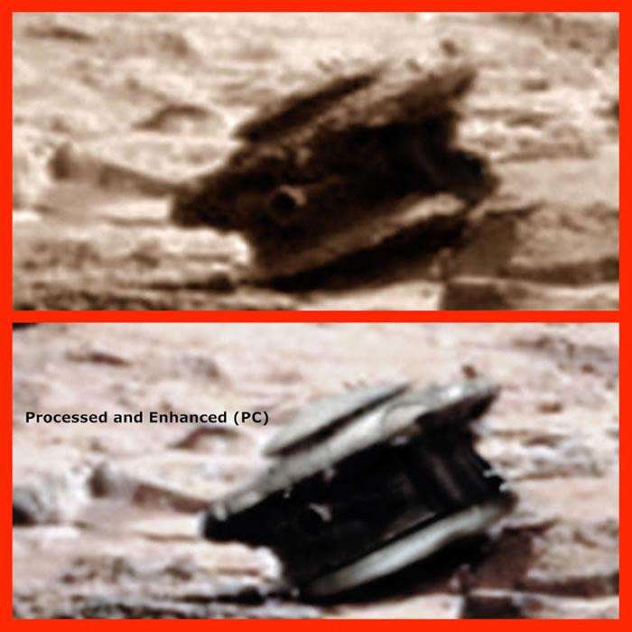 这张照片由NASA的火星探测车“好奇号”所拍,于3年前左右由NASA公开,当时就有UFO迷研究相中一块形状奇特的“大石头”,不过最后无得出结论。至周一有网民公开一张放大、略改光暗等效果的图片,始发现这块大石“看似一部无人机”,认为是由“火星人制造”或是“外太空文明为探测火星而派出的无人机”。