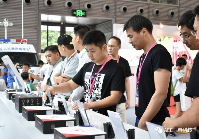 上午9时开幕式开始,AEE一电航空展台装备级警用无人机F100、工业级无人机F600、警用通讯指挥车、消费级无人机A20及手掌无人机A10、警用执法记录仪等产品就脱颖而出,前来参观、洽谈的客商络绎不绝。