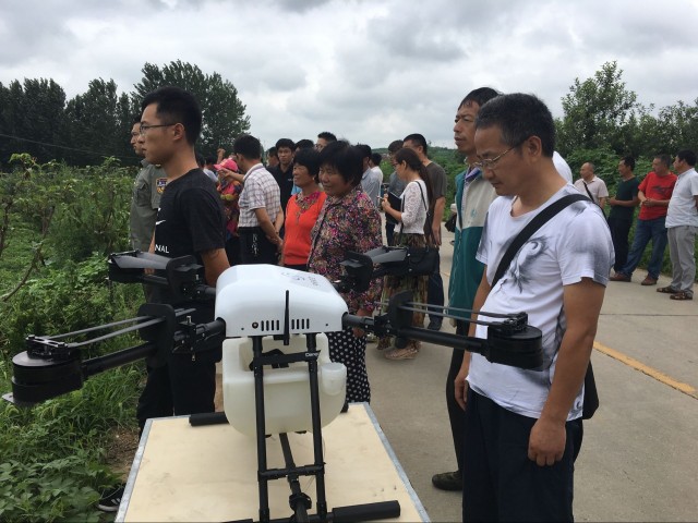 此次活动引起了广大农户的关注。在活动现场中,果农们聚在一起咨询、讨论无人机的应用原理和应用方法。工作人员对无人机的性能做了充分具体的介绍,他们的演示分花生植保、苹果植保两部分,效果颇为不错,无人机植保的作业效率高、穿透力强、减少农药使用、农药对操作人员危害少等特点都是人工喷药难以达到的。
