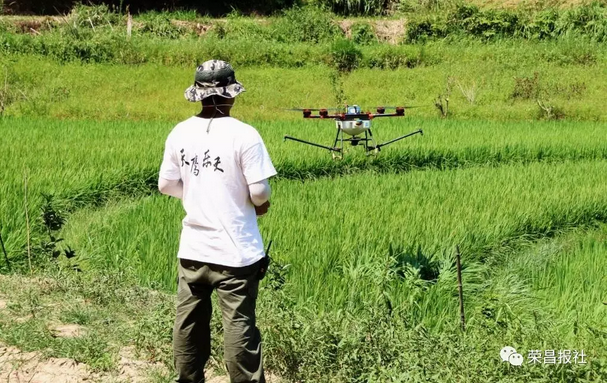 眼下正是水稻抽穗、灌浆时节,病虫害防治工作进入关键时期。当农户还在为喷洒农药发愁时,7月27日,“荣昌造”天鹰乐禾无人机飞进了巴南区的农田,让农户真正看到了农业科技带来的便利。三架植保无人机不到两天喷洒完近900亩水稻,让重庆顺友稻米种子专业合作社社长刘顺友乐得合不拢嘴。