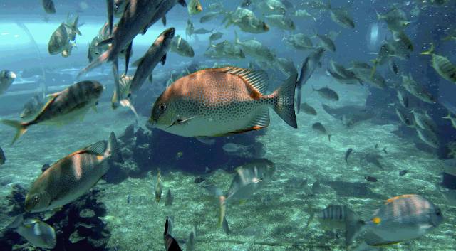 鱼类大片的聚集在一起是出于本能,这也是为了当遭遇掠食者的捕食时,不至于整个群族灭绝。所以鱼群风暴事实上是自然界的一种生存法则,即使是在海洋馆也保持着。