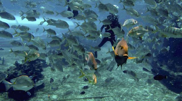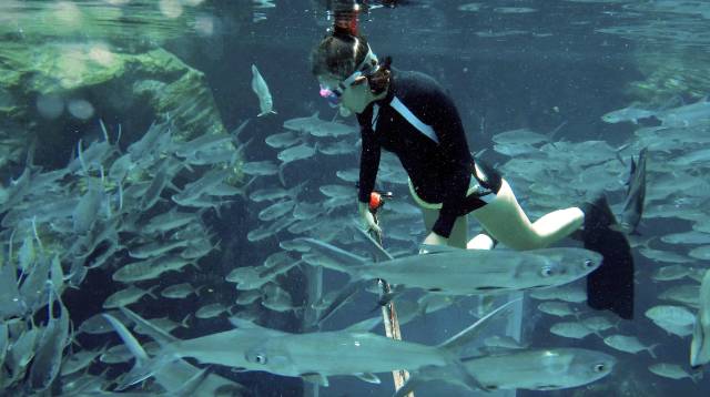 这两天如果你去到三亚海棠湾海洋馆,会在那里看到一位正在度假的熟悉朋友,潜水员和水下的鱼儿都在围着他转,享有这种待遇的,自然非小海鳐莫属。