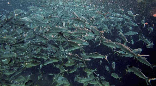 这次在海洋馆拍摄的,只是一场小型的鱼群风暴,如果是在更广阔的海洋,运气好的话,可能会遇到更庞大的鱼群,比如: