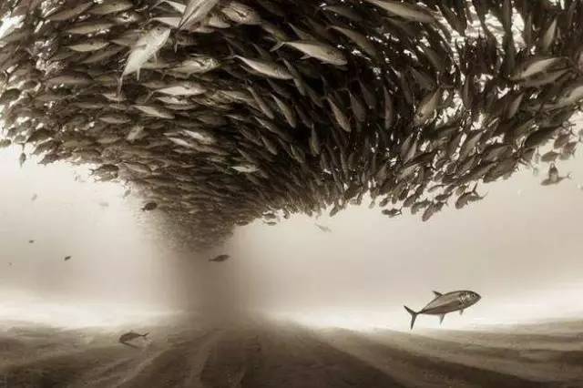 海中成群游动的鱼,纷乱而有序。随着水流和食物,忽东忽西,遇到猎手的时候,倏忽聚散,就像一个严密分工协作的组织,神秘而又美丽。