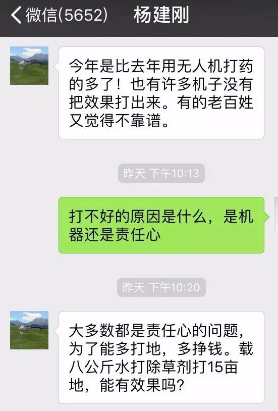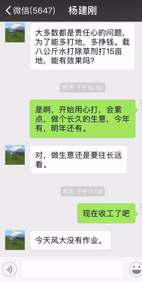 最后,在我再三追问老杨,现在经营飞防累不累,对飞防的信心和认识有没有转变,以及存在哪些问题,老杨说“累是肯定的,主要是飞手人员不好留,有的太年轻,吃不了这个苦......”