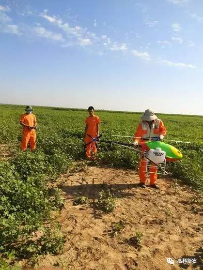 此次飞防主要使用高科新农16KG单旋翼电动无人机搭配高效氯氟氰菊酯等杀虫剂。