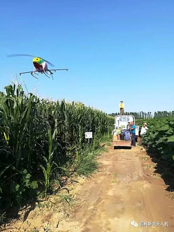 由图可见此时玉米已有2.5-3.2米高,种植密集,人工及地面器械施药困难,普通的多旋翼无人机打药无法喷至根部,施药效果不理想。