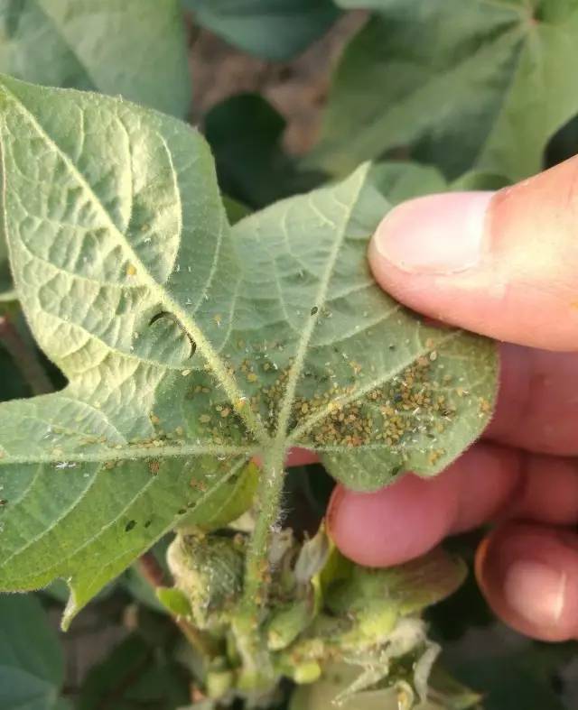 左:爬满蚜虫的棉花叶片