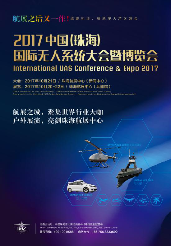 今年,“2017国际无人系统大会”与“中国(珠海)国际无人系统博览会”将在10月20日-22日在珠海囯际航展中心举行。届时,国内外无人系统企业,行业大咖、用户买家将云集珠海,分享无人系统产业发展的傲人成果。