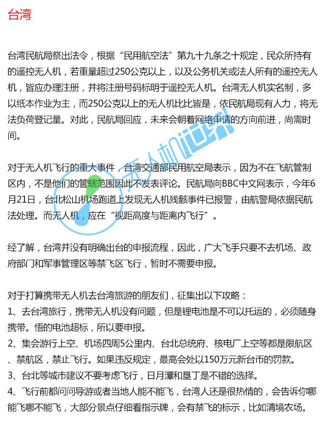 以下为各省区市详细信息,未尽之处,欢迎各位飞手网友投稿补充、纠错。